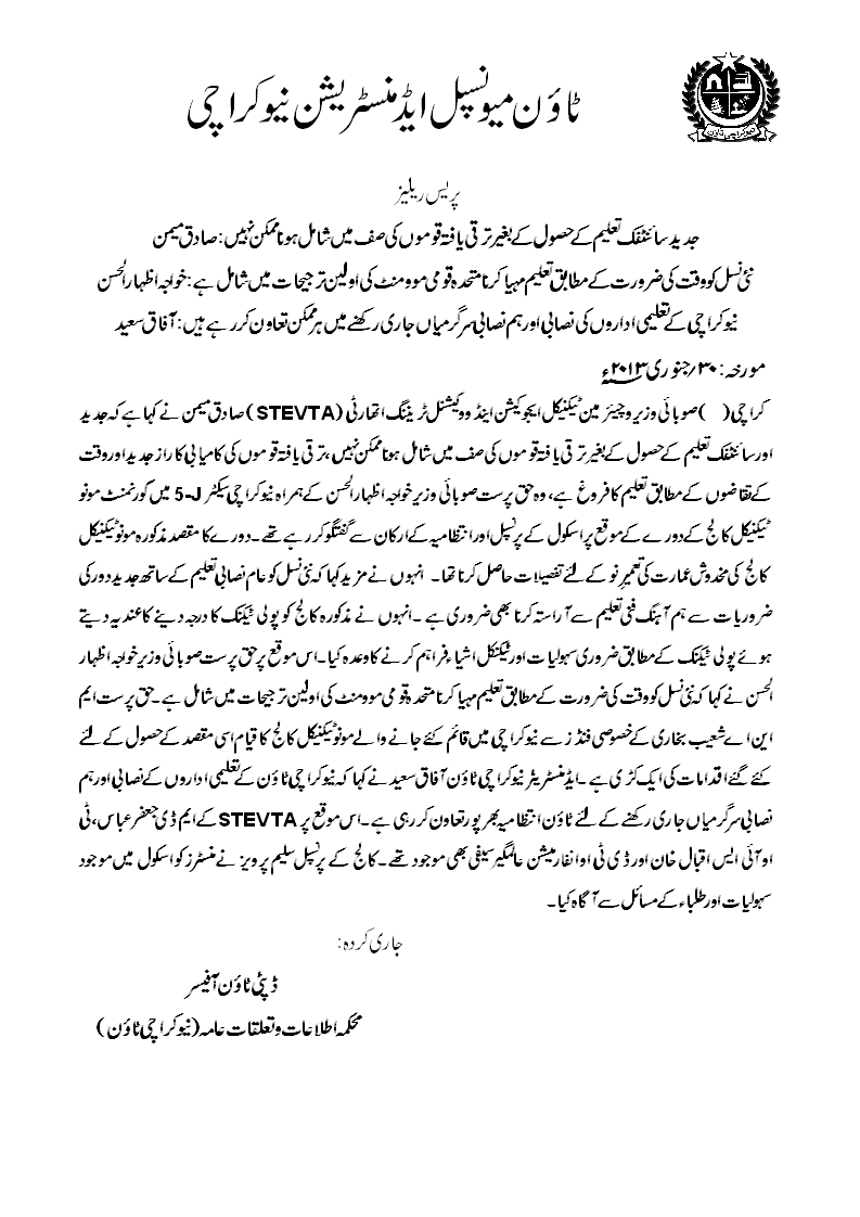 DMC New Karachi Zone is one of the biggest Zone of the Karachi. It has 13 No. of union councils. It is a very sensitive, thickly populated town population is (1,000,000) approximately (6.84.173 according to 1998 census) and having a very diverse social set-ups. E-mail:info@nktown.tk Website: www.newkarachitown.tk